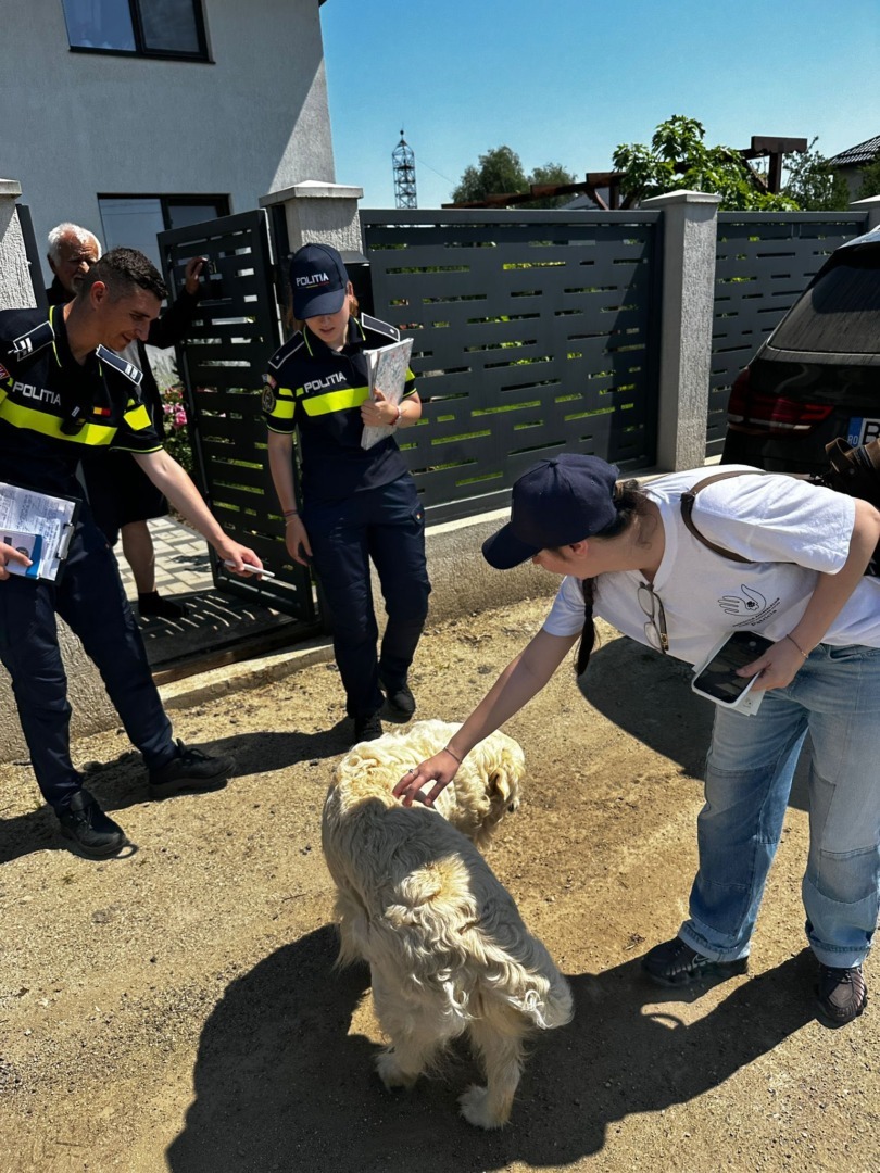 Polițiști într-o curte în care se află un câine Sursa foto: Protecția Animalelor CJ Ilfov