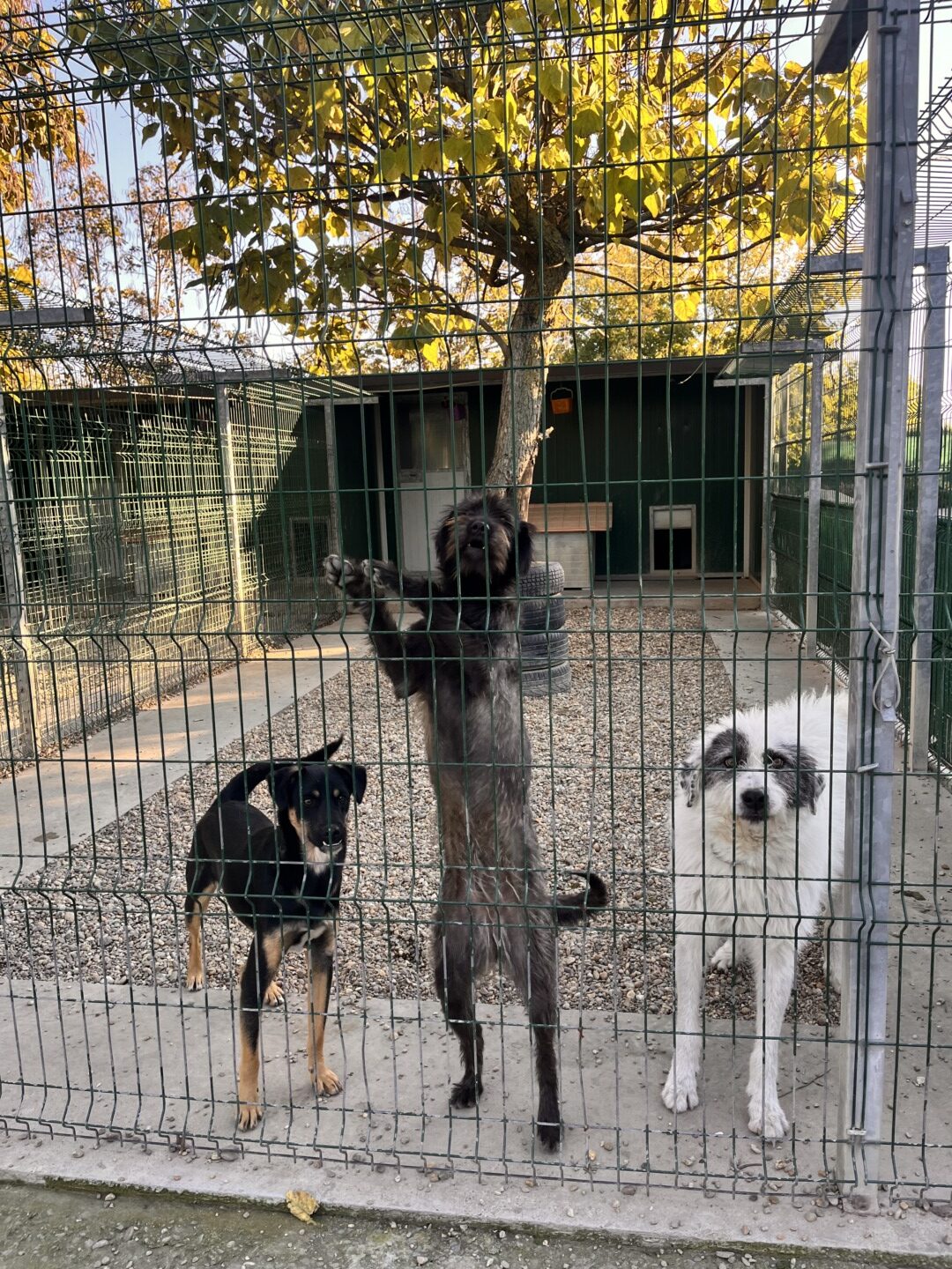 La Adăpostul pentru câini e liniște, liniște până intrăm noi. Cum e, de altfel, și firesc. Țarcurile sunt spațioase și au cuști în spate unde cățeii se odihnesc. Sar pe gard însă imediat ce vine cineva; poate, poate e un om cu suflet mare, disponibil să le ofere un cămin. Curățenia e impecabilă, iar pe gardul din fața padocurilor e scris din când în când „NU”, semn că nu trebuie să stai prea mult ca să nu se agite câinii prea tare. Curățenie e, condiții au, iubire ar oferi cu carul, dar n-au o familie a lor. În prezent, sunt în jur de 200 de căței. Sigur, se pot face adopții la distanță; pentru doar 2 euro pe lună, ai un suflețel adoptat, iar viața comunității devine mai bună.