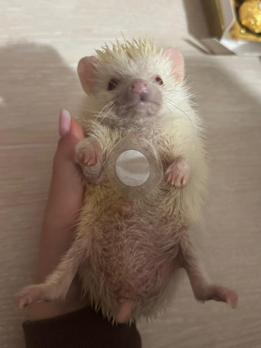 Un mic arici cu probleme la picioarele din spate a început recent terapia cu Carnosina.