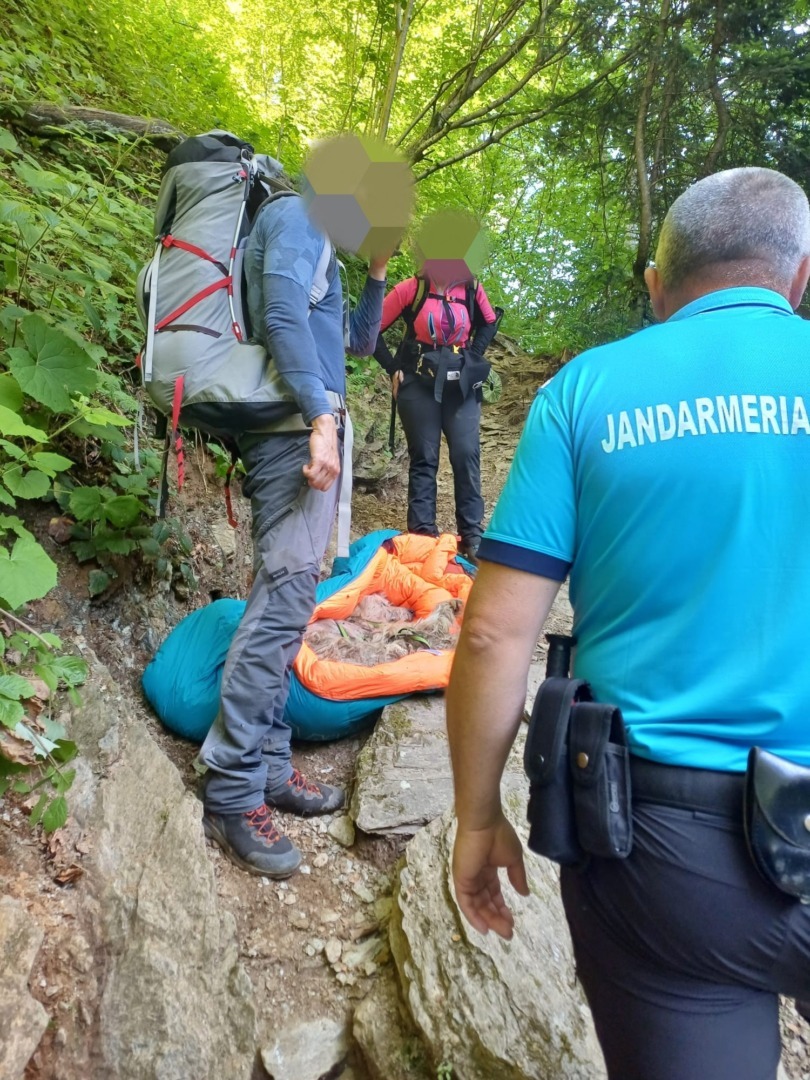 Echipa de intervenție a Postului Montan Sâmbăta a ajuns rapid în zonă și a găsit animalul în stare precară, fără răni vizibile, însă prea slăbit să se miște singur. Într-o acțiune care a durat aproximativ 45 de minute, câinele a fost coborât cu grijă pe brațe, de pe traseul accidentat, până la baza masivului.