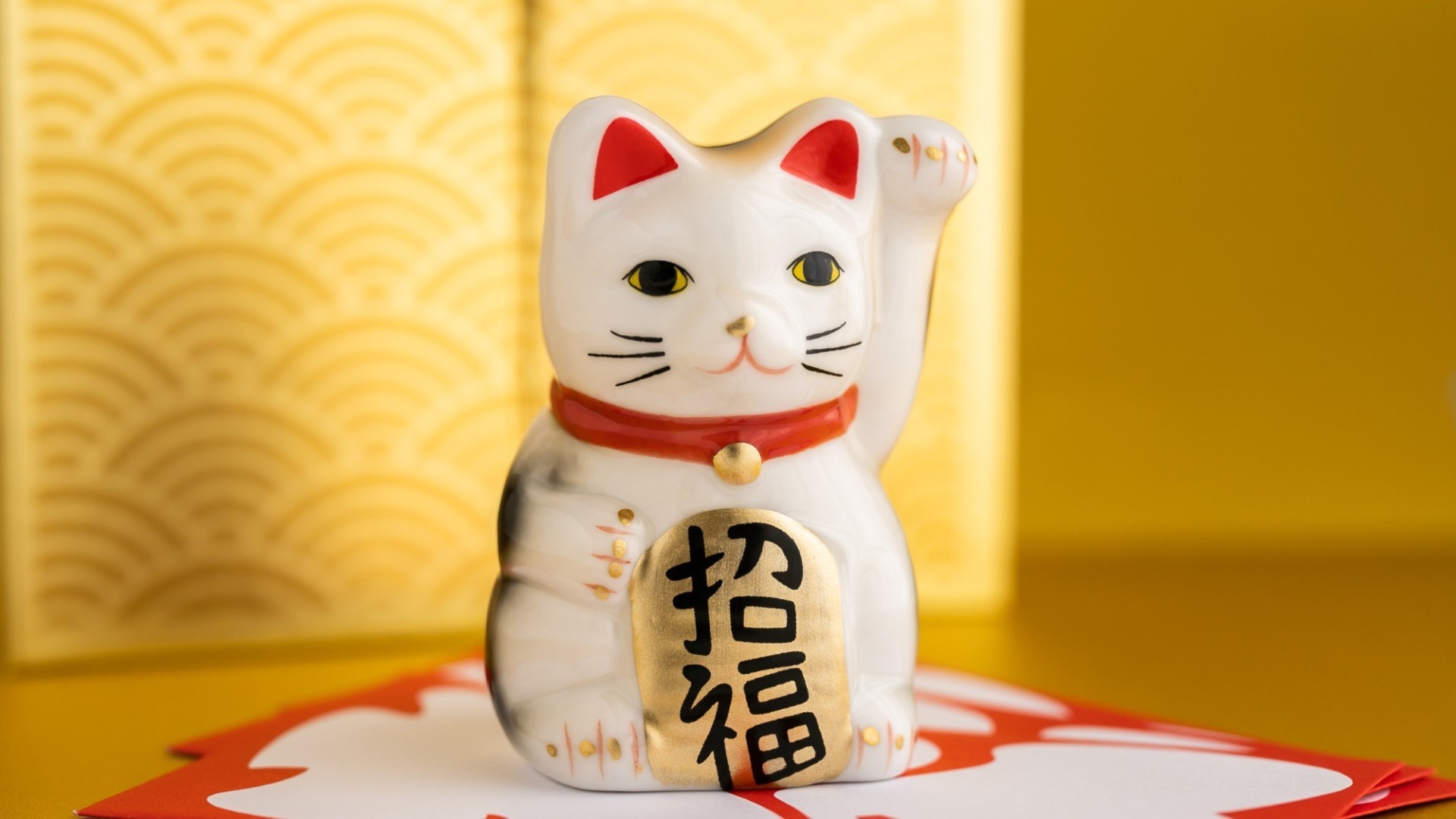 Celebrul pisoi cu lăbuța ridicată, văzut adesea în restaurante sau magazine, își are originea într-o legendă japoneză. Se spune că o felină Calico a salvat un samurai, aducându-l la adăpost chiar înainte de o furtună. De atunci, Maneki-Neko este simbolul norocului și al prosperității.