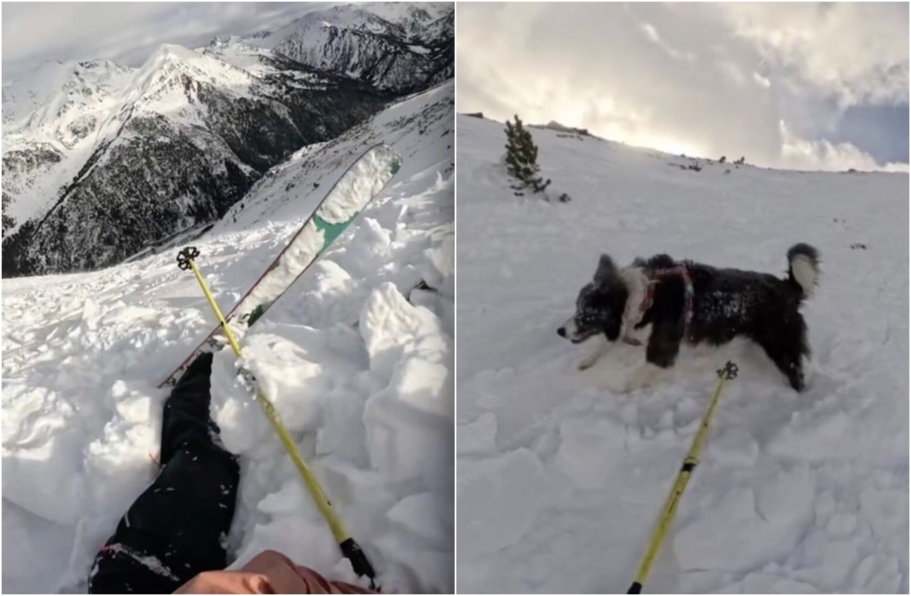 Un schior și câinele lui au fost surprinși de o avalanșă bruscă în timp ce se afla în Munții Pirinei din Andorra. Sportiva Ares Masip a declanșat accidental alunecarea de teren în timp ce schia în afara pârtiei alături de câinele său husky, Cim.