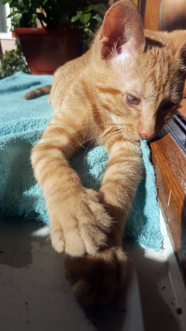 Avea zgardă și medalion cu numărul de telefon, dar este posibil să le fi pierdut… cum la fel este posibil să fi ajuns mai departe decât am crede. Blănița nu are o culoare aprinsă, ci este mai degrabă un portocaliu mai „murdar”, însă nu are pete albe.