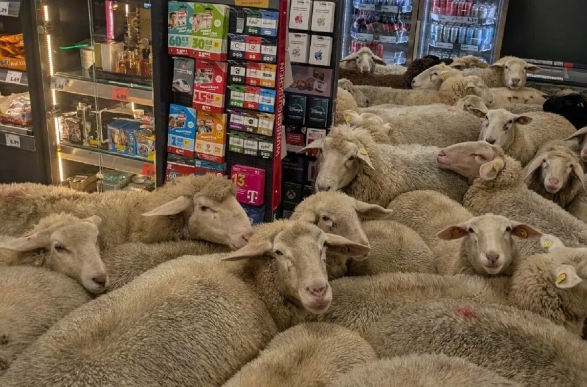 În jur de 50 de oi au intrat într-un supermarket din Germania, după ce s-au pierdut de turmă. Reprezentanții magazinului susțin că nu au de gând să ceară despăgubiri ciobanului și au transmis, ironic, faptul că intenționează să preia, pentru un an, grija animalelor, inclusiv furnizarea de hrană.
