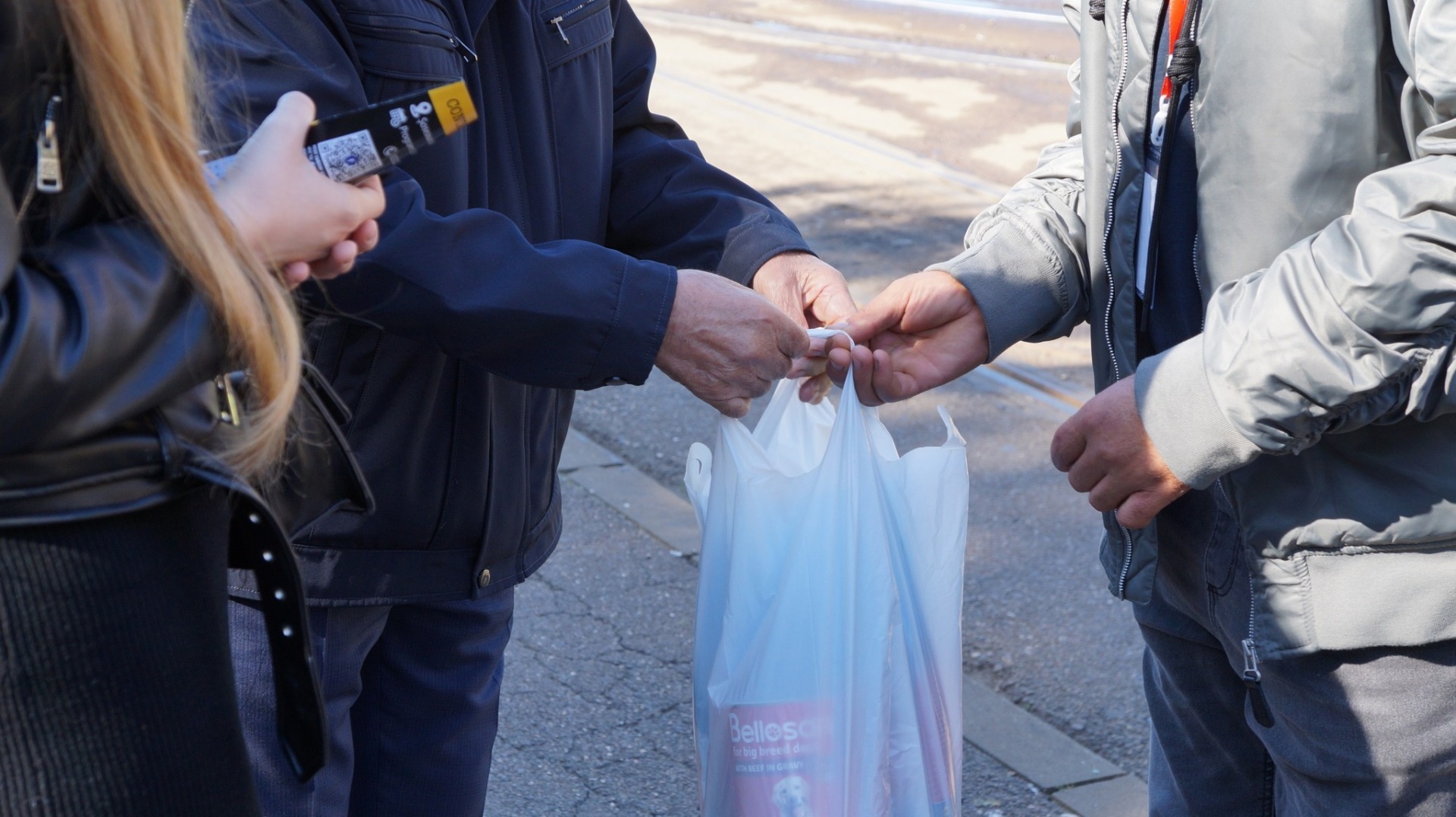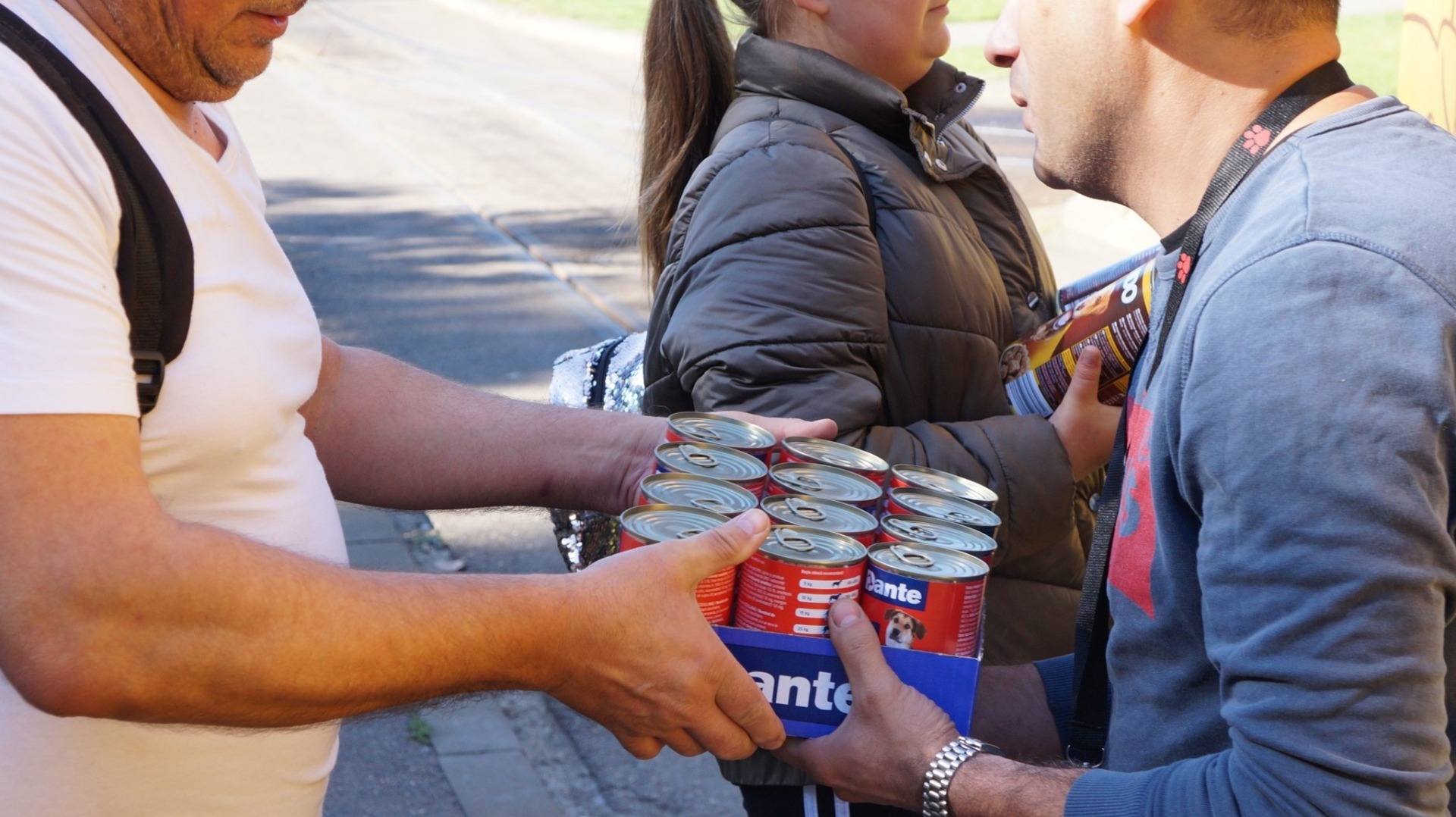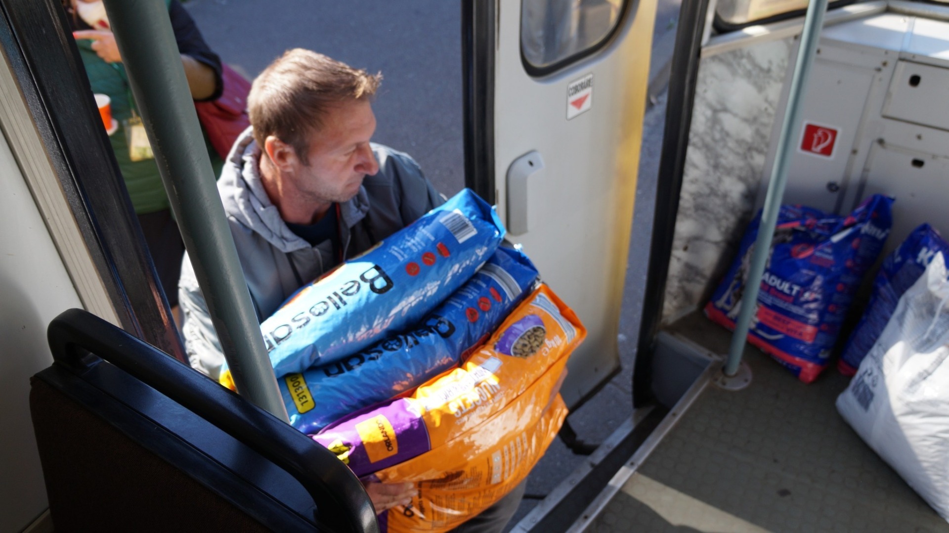 Sacii cu mâncare, conservele și recompensele au fost aduse de donatori în stațiile tramvaiului pe care sunt pictați câini și pisici și care străbate orașul.