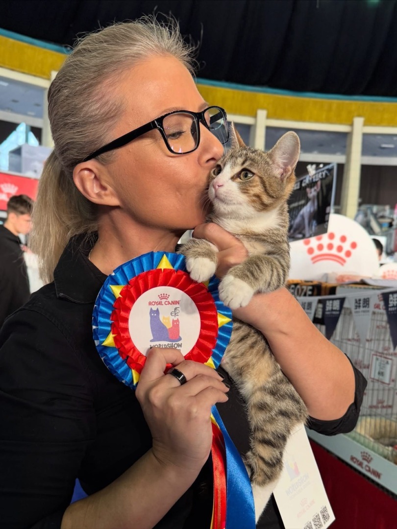 Vedeta absolută a popularității la Campionatul Mondial Felin a fost un motănel salvat de pe stradă!