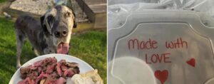 Nu doar că au pregătit masa cu grijă și suflet, dar au scris și pe capacul cutiei: „Făcută cu dragoste”, iar pe bon au adăugat un mesaj personalizat. Mai mult, când Hunter a ajuns să ridice comanda, angajatele au ieșit să îi transmită condoleanțe și să îl îmbrățișeze.