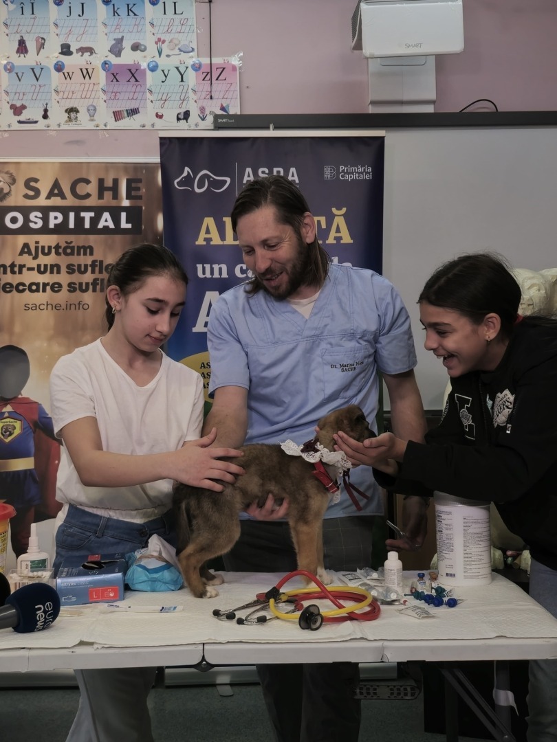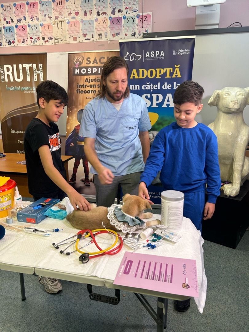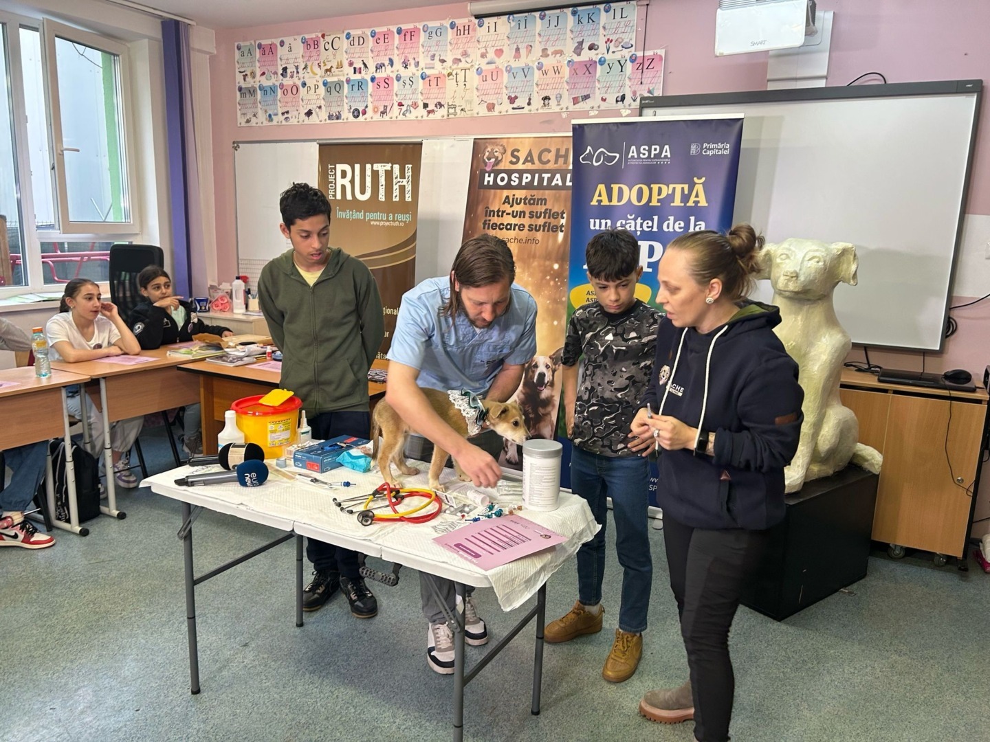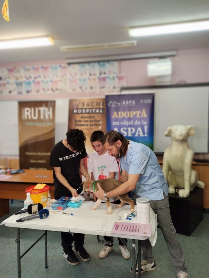 Proiectul „Veterinar pentru o zi, salvator pe viață” a fost organizat de ASPA și de Asociația Sache Vet. Astfel, alături de angajații ASPA au fost prezenți în unitatea de învățământ și medici veterinari, care le-au explicat cum se face o examinare generală a cățeilor. De asemenea, cei mici au primit sfaturi despre cum pot fi prevenite anumite boli și li s-a prezentat importanța vaccinării, a deparazitării și a microcipării. Ulterior, copiilor li s-a dat ocazia să pună totul în practică pe blănoșii-pacienți.