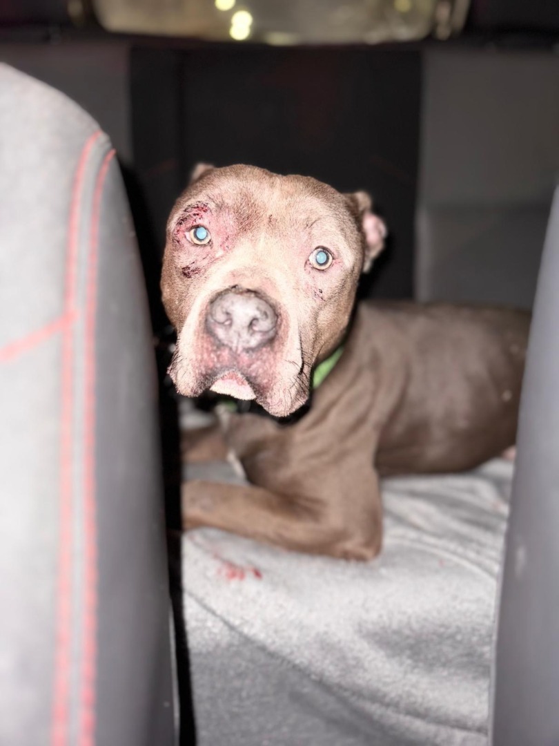 Un metis de Amstaff așteaptă într-unul dintre adăposturile ASPA să fie luat acasă. A fost abandonat de stăpâni la 4 ani, a ajuns în adăpost bătut și mușcat, iar acum așteaptă o familie răbdătoare și bună pe care s-o iubească.