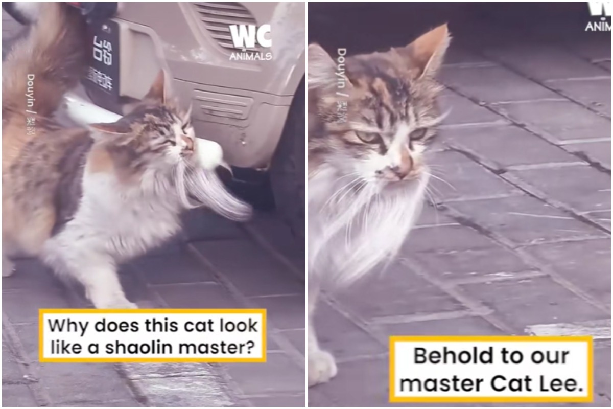 În imaginile publicate pe platforma Douyin, varianta chineză a TikTok, apare o pisică ce aduce ca aspect cu un maestru shaolin străvechi: sprâncene, mustață și barbă lungă și albă – semne clare de înțelepciune și cunoștință.