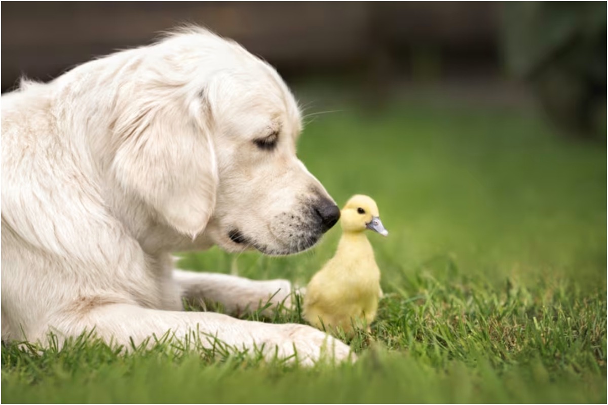 Câine și un boboc de rață sursa foto: Freepik