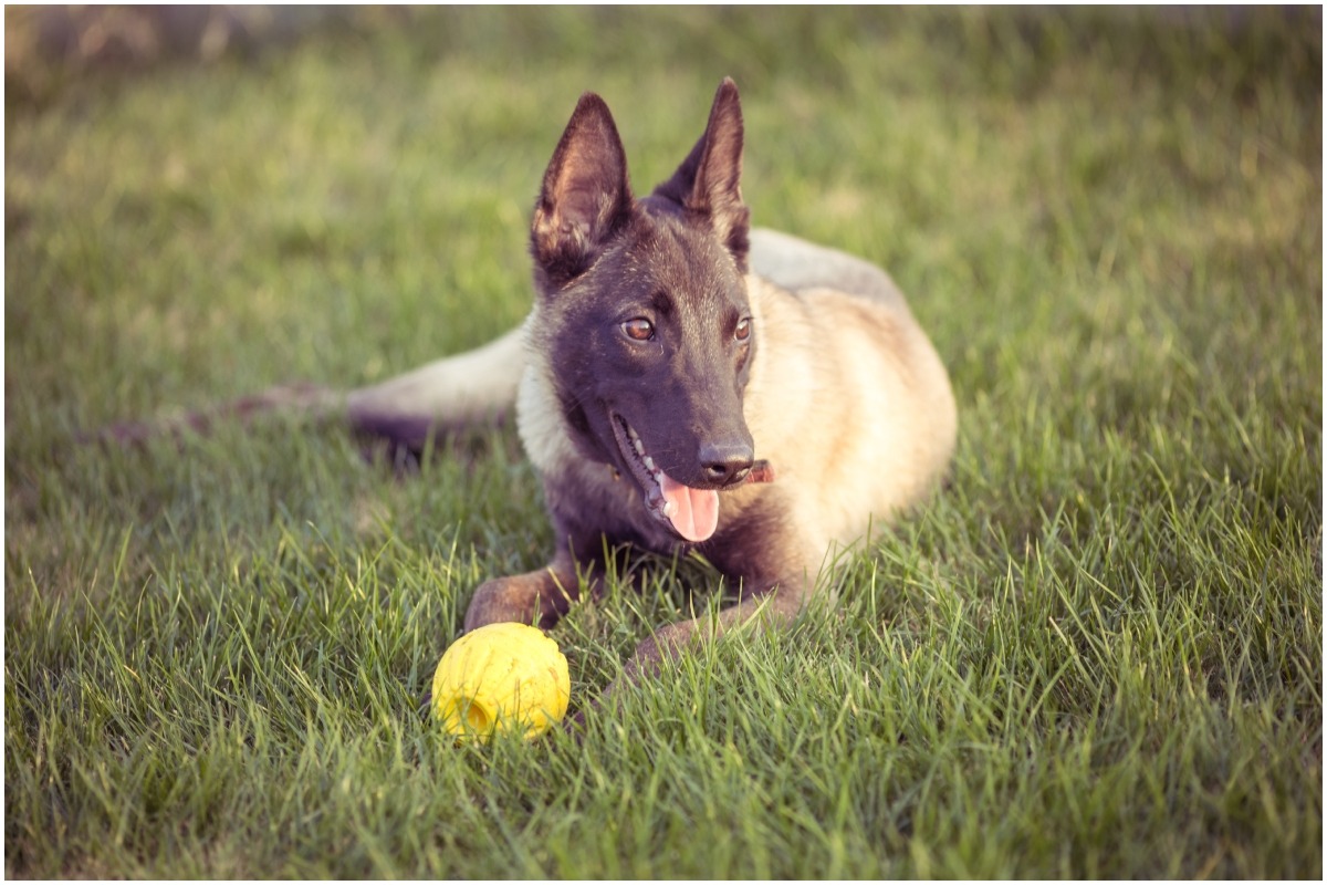 Câine pe iarbă cu o jucărie sursa foto: Freepik
