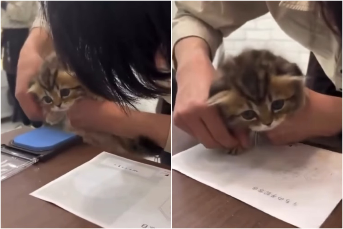 Un adăpost de animale din Japonia s-a făcut remarcat prin tradiția de a pune animalele proaspăt adoptate să semneze certificatul cu propriile lăbuțe. Un astfel de moment a avut loc în momentul în care un pui de pisică și-a găsit o nouă casă, imaginile fiind postate pe Instagram.