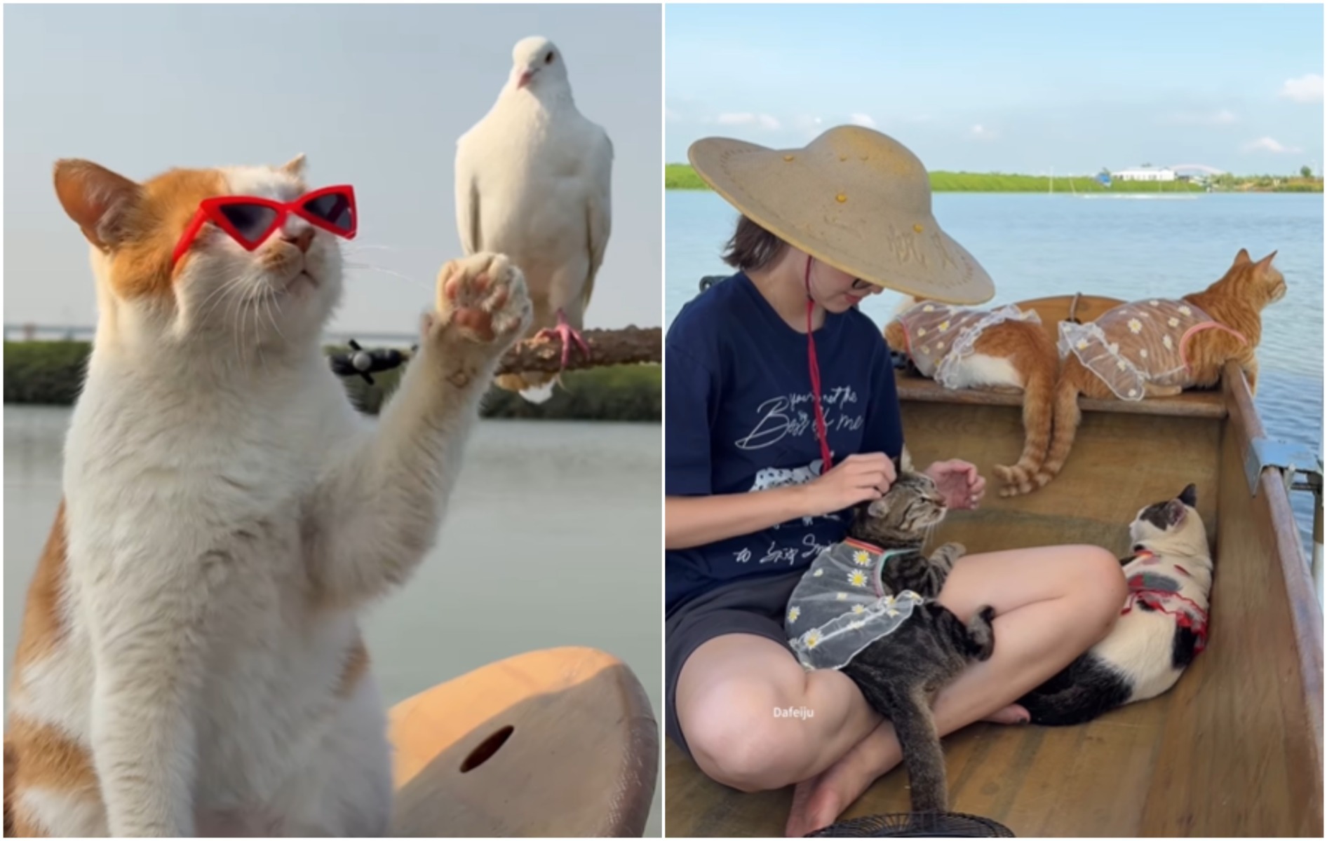 Contul de Instagram @dafeiju001 postează aproape zilnic imagini cu cele patru pisici care fac deliciul internauților. Fiecare se remarcă printr-un gest sau comportament aparte, însă de remarcat la toate este cât de mult le place să pescuiască.