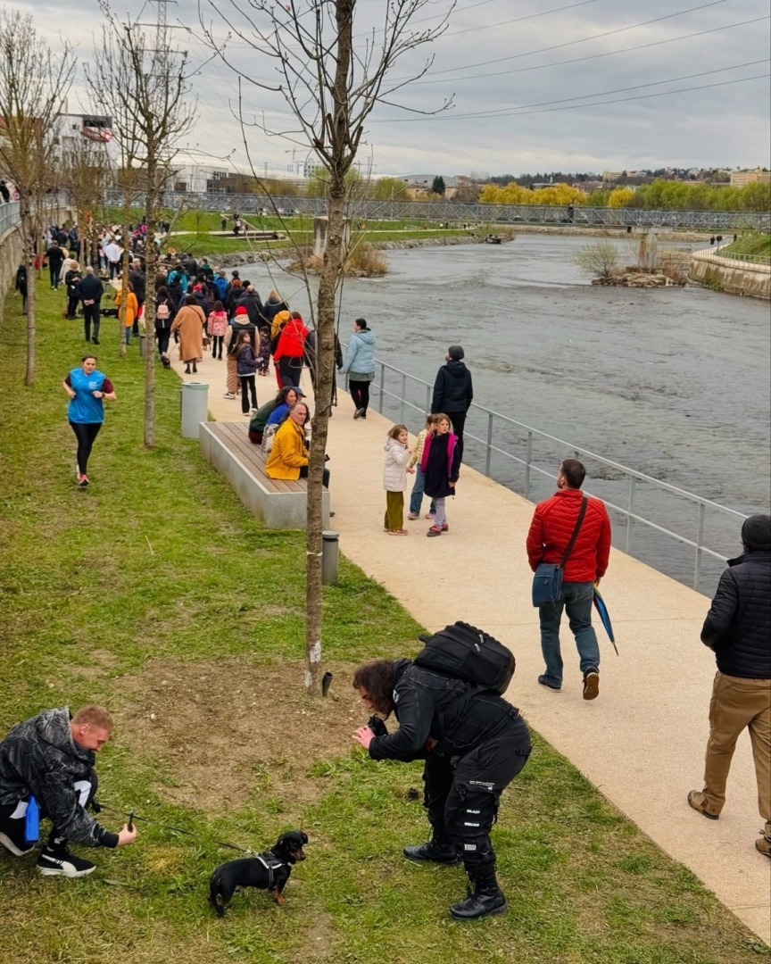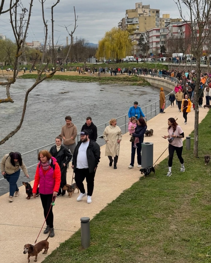 Desigur, au fost bineveniți și căței din alte rase. Cu toții s-au plimbat pe un traseu bine stabilit – de la Zona Verde de deasupra Plajei Someș, pe Podul Albastru, apoi pe Faleza Someș, au urcat pe Podul Alb (Rozelor), apoi în Zona Verde de deasupra Someșului.
