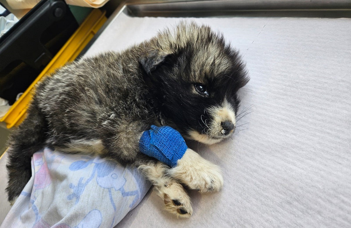 Zorro a ajuns în grija echipei Sache Vet ca o adiere de viață abia perceptibilă. Cântărea doar 1.700 de grame, era un cățel cât o respirație. Slăbit, palid și lipsit de vlagă, părea mai degrabă o amintire a unui câine.